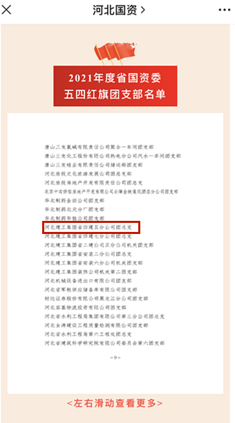 5月上旬,喜訊傳來!五分公司團(tuán)總支受到河北省國資委團(tuán)委、省國資委青聯(lián)聯(lián)合表彰,被評為“2021年度河北省國資委五四紅旗團(tuán)支部”。