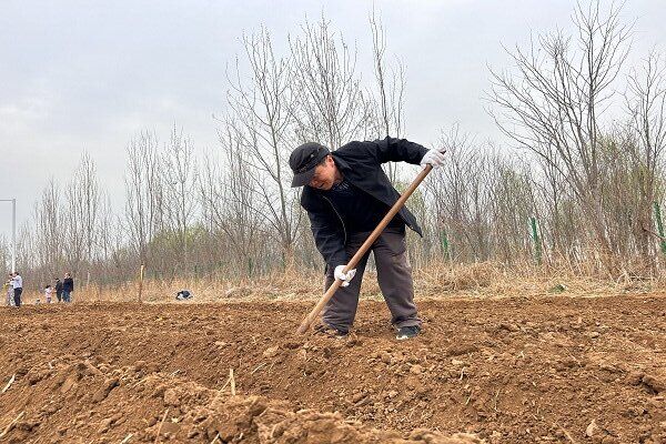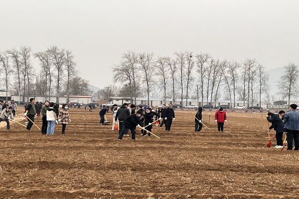 “先把自家的地壟耙起來,然后把地?fù)?!”在種植基地,不時傳來李懷生指導(dǎo)大家的聲音,各單位積極響應(yīng),熱火朝天地掄起耙子等農(nóng)具,在各自地塊開始了種植前的準(zhǔn)備工作。當(dāng)李懷生請來種植基地的技術(shù)人員時,大家紛紛上前認(rèn)真聽講。技術(shù)人員向大家詳細(xì)講解了針對不同種子如何掌握挖坑深度、種植方式、覆膜等需要注意的事項后,大家個個干勁十足,全身心地投入到播種當(dāng)中。種植完成后,大家打開澆灌的水龍頭,咕咕的水流進(jìn)了耙好的一塊塊地畦里,這一刻,大家共同的期待一定是在這片土地上,能夠看到這些綠色蔬菜的成長與豐收。