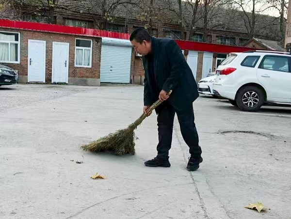 作為兼任分公司院內(nèi)五家單位的警衛(wèi),王亮沒把“守大門”當(dāng)成簡單的值守,而是用“多走一步、多想一層”的主動(dòng),把院區(qū)安全與服務(wù)做得既扎實(shí)又貼心。夜班值守時(shí),他更把“巡查”做成了“安全隱患排查”,仔細(xì)檢查門窗、消防器材及車輛停放。有次巡查,他注意到有車輛未關(guān)車窗,當(dāng)即聯(lián)系了車主,確保安全。而每天清晨的打掃,更像是他對“家”的細(xì)致守護(hù)的延伸。每天六點(diǎn)天剛亮,多數(shù)同事還沒出門,他已經(jīng)扛著掃帚、拎著簸箕,在機(jī)關(guān)前后院忙活開了。落葉飄在花叢里,他就蹲下來一片一片撿;紙屑卡在磚縫里,他用小夾子慢慢夾出來,連墻角的雜草都要順手拔掉?!霸凼刂@院兒,不僅要保安全,更要讓大伙兒上班看見清亮的環(huán)境,心里敞亮?!蓖趿恋脑捳Z樸實(shí)無華。在他眼里,“警衛(wèi)”不只是一份工作,更是守護(hù)分公司“家”的責(zé)任,這份盡責(zé)與主動(dòng),正是“把院區(qū)當(dāng)自家”最樸素的表達(dá)。