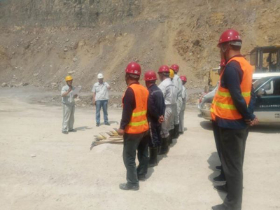 開始前,所有參加防汛搶險小組成員接受了中宇礦山安全管理部的現(xiàn)場培訓(xùn),要求所有成員迅速了解演練步驟及注意事項(xiàng),掌握礦山施工區(qū)的防汛搶險作業(yè)要領(lǐng),并將防汛物資裝備逐一清點(diǎn),做好進(jìn)入演練的準(zhǔn)備。