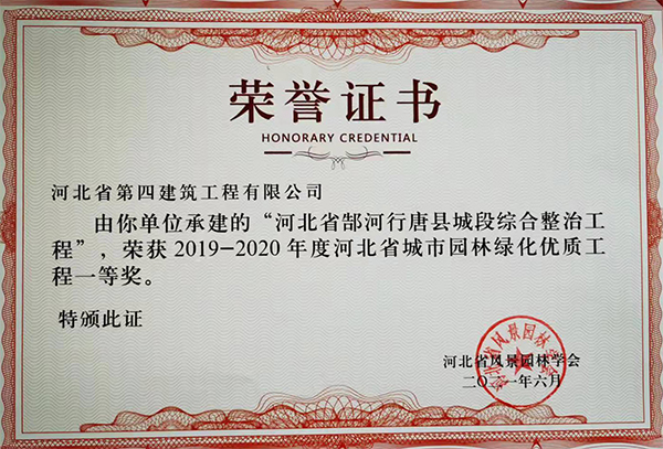 10月19日至20日,由河北省風(fēng)景園林學(xué)會主辦的第四屆六次常務(wù)理事會、四次理事會暨2020年年會在唐山召開。會上,由八分公司承建的“河北省郜河行唐縣城段綜合整治工程”,被評為2019-2020年度河北省城市園林綠化優(yōu)質(zhì)工程一等獎。這是繼榮獲石家莊市興石杯(市優(yōu))工程獎之后,該項目獲得的又一獎項,為公司工程榮譽(yù)墻再添一抹色彩。
