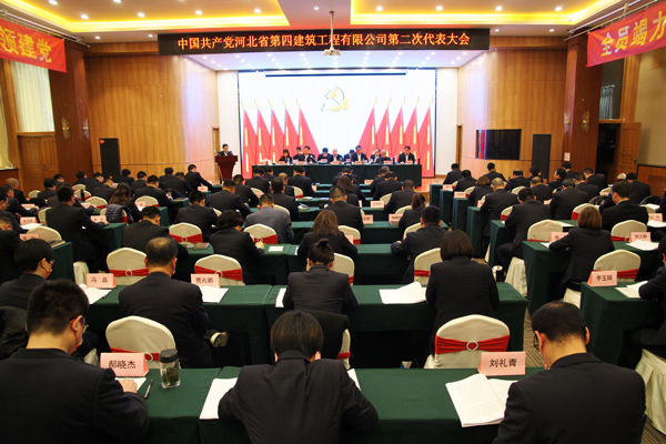 當(dāng)日,中國(guó)共產(chǎn)黨河北省第四建筑工程有限公司第二次代表大會(huì)在石家莊市利淳商務(wù)酒店勝利召開(kāi)。在預(yù)備會(huì)之后,大會(huì)在莊嚴(yán)的《國(guó)歌》聲中隆重開(kāi)幕,96名黨員代表齊聚一堂,凝聚思想共識(shí),共商黨建良策,共謀發(fā)展大計(jì),共繪美好藍(lán)圖。集團(tuán)公司黨委書記、董事長(zhǎng)、總經(jīng)理張?zhí)炱缴W臨會(huì)議并講話,集團(tuán)公司黨委辦公室主任、組織部部長(zhǎng)張秋英、集團(tuán)公司紀(jì)委副書記、紀(jì)委辦公室主任、監(jiān)督檢查室主任張煜出席大會(huì)并全程指導(dǎo)。會(huì)議先后由公司黨委副書記、總經(jīng)理唐志強(qiáng),黨委副書記、紀(jì)委書記、工會(huì)主席李懷生主持。