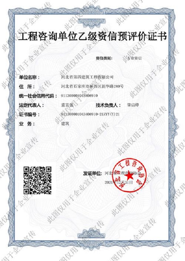 1月6日,設(shè)計院喜獲“工程咨詢單位(建筑)乙級資信預(yù)評價證書”。設(shè)計院將可在本專業(yè)內(nèi)承攬建設(shè)項目的工程咨詢業(yè)務(wù),新業(yè)務(wù)的注入為設(shè)計院帶來新的活力,標(biāo)志著設(shè)計院在工程咨詢服務(wù)領(lǐng)域迎來廣闊的發(fā)展空間。