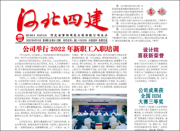 公司黨委立足講好四建故事,傳播四建美譽(yù),發(fā)力宣傳平臺建設(shè),做亮業(yè)績宣傳、做好典型宣傳、做強(qiáng)形象宣傳,發(fā)揮了最大宣傳效能。2022年1-11月份,出版《河北四建》11期,公司網(wǎng)站發(fā)稿比去年同期增加166 %;微信公眾號發(fā)稿期數(shù)和條數(shù),比去年同期增加28%和20%;抖音號發(fā)布視頻數(shù)比去年同期增加137.5%。8月份,公司3個平臺在中施企協(xié)組織的2022年工程建設(shè)企業(yè)文化作品競賽中均獲獎,其中《河北四建》獲得報(bào)紙類優(yōu)秀獎、公司網(wǎng)站獲網(wǎng)站類優(yōu)秀獎、公司微信公眾號獲公眾號類優(yōu)秀獎。(黨委宣傳部)