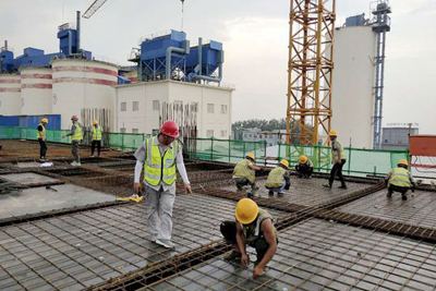 同心協(xié)力完成節(jié)點(diǎn)任務(wù)。水泥配料站、水泥粉磨是業(yè)主目前關(guān)注重點(diǎn),要求8月3日前筒倉滑模到14.4米庫底板、水泥粉磨11.5米平面混凝土澆筑完,為安裝輥壓機(jī)、減速機(jī)等設(shè)備創(chuàng)造條件。時(shí)間緊任務(wù)急,持續(xù)的降雨反而更加激發(fā)了項(xiàng)目部的斗志,水泥配料站筒倉施工采用滑模工藝,滑模平臺上鋼筋綁扎、預(yù)留預(yù)埋安裝、混凝土澆筑、庫壁壓面等各道工序相互配合,工種銜接默契。雖然雨水經(jīng)常光顧,但是大家沒有絲毫懈怠,熱火朝天的干勁兒始終未減。水泥粉磨車間樓層高、場地狹窄給施工造成困難,項(xiàng)目部采用白天作業(yè)面施工,晚上班組倒運(yùn)材料等方法,保證施工進(jìn)度。截至7月30日上午,水泥配料站14米庫底板、水泥磨11.5米平面、水泥及礦粉儲存基礎(chǔ)筏板均已澆筑完混凝土,為項(xiàng)目下一步施工創(chuàng)造了積極有利條件。(三分公司)