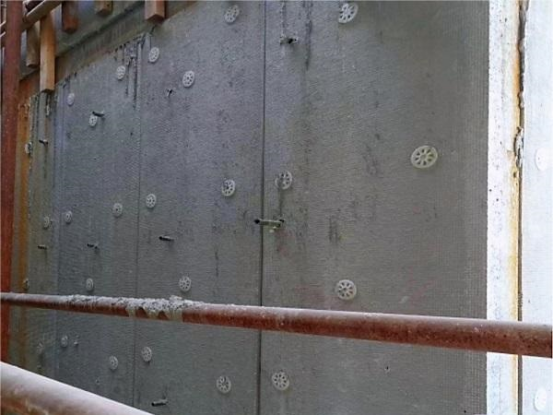 為此,項(xiàng)目部成立專門(mén)的課題實(shí)施小組,提出利用BIM技術(shù)繪制Revit模型,對(duì)復(fù)合保溫板進(jìn)行統(tǒng)一建模排版、分拆、編號(hào)、加工制作,再采用“三合一”技術(shù)創(chuàng)新方法開(kāi)展施工:一是基于3D打印技術(shù),設(shè)計(jì)了一種帶卡槽結(jié)構(gòu)的新型墊塊,來(lái)控制鋼筋混凝土保護(hù)層厚度,二是制作加固直板,確保復(fù)合保溫板陰陽(yáng)角施工質(zhì)量,三是采取螺栓孔洞內(nèi)填充防水砂漿、保溫砂漿封堵等措施,不僅增強(qiáng)了墻體的性能,還提高了外墻防滲防漏水性能,共同形成了“FW-Ⅲ復(fù)合保溫板與模板一體化支設(shè)工藝”科研成果。