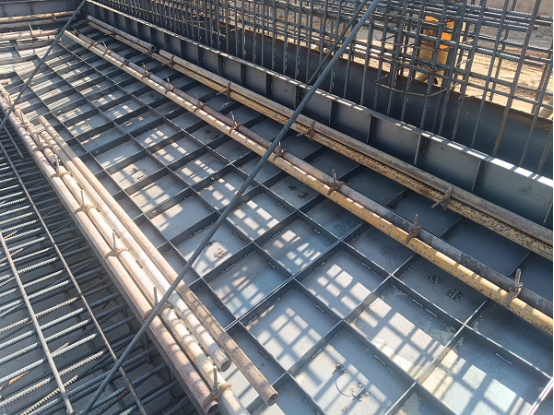 在石家莊西南地表水廠項目清水池工程的實際應(yīng)用中,該技術(shù)成效尤為顯著。質(zhì)量方面,腋角尺寸精度誤差嚴格控制在±2mm內(nèi),混凝土密實度達98%,外觀質(zhì)量一次驗收合格率100%;效率方面,模板支設(shè)效率提升30%,單項工序直接節(jié)約工期16天,人工投入減少25%;經(jīng)濟與安全環(huán)保方面,模板可重復周轉(zhuǎn)利用降低施工成本,同時消除木模板切割作業(yè)的安全風險,減少建筑垃圾產(chǎn)生量60%。