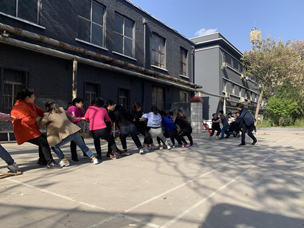 場面最為精彩熱烈的是最后的拔河比賽,隨著裁判的一聲哨響,參賽雙方人員齊心協(xié)力各不相讓,一條沉重的繩子被拉得筆直,大家全力以赴,努力爭奪。特別是女子隊,她們鼓足了勁兒,漲紅了臉,拼搏的勁頭絲毫不輸男子隊,真是巾幗不讓須眉,做到了姿勢、手勢、口號三者的高度統(tǒng)一,成為比賽場上最亮麗的一道風景線。在場邊觀看的職工紛紛當起了“拉拉隊”,他們大聲吶喊,拍手叫好,加油聲一浪高過一浪,不少人恨不得親自上陣,一顯身手。比賽者,熱汗淋淋;鼓勁者,大聲助威,場面好不熱鬧!