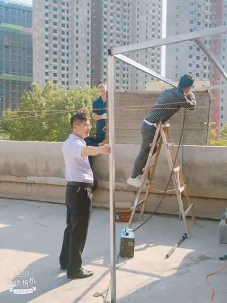 說干就干,立即行動(dòng)。劉保國和左建華對(duì)樓頂平臺(tái)實(shí)地量測,記錄好尺寸。兩人一邊量著,一邊比劃著,對(duì)所需的材料做到心中有數(shù)。“采購材料的事兒,就交給我了?!痹O(shè)備材料科科長史永濤拿出電話就開始聯(lián)系起來。材料就位后,考慮到有些電焊的活兒需要專業(yè)的工人,劉保國趕緊聯(lián)系了一名電焊工。大家分工合作,你遞材料、我扶鋼管,你安裝、我綁線,邊干邊聊。30多度的高溫下,大家的額頭上直冒汗,但干勁兒絲毫沒減。防雨棚安裝完畢,新買的洗衣機(jī)放置到位,大家松了一口氣?!敖裉斓拇蠊こ探Y(jié)束了,趁著這次機(jī)會(huì),咱們把宿舍的門窗都檢查一遍。”劉保國說道,抬手擦了擦汗水,便拿起工具向宿舍走去。大家對(duì)宿舍的門窗逐一進(jìn)行檢查,對(duì)破洞的紗窗進(jìn)行了更換,對(duì)門上松動(dòng)的把手進(jìn)行了維修。