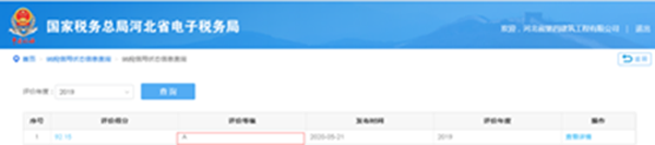 近日,國(guó)家稅務(wù)總局公布了2020年全國(guó)納稅信用評(píng)價(jià)結(jié)果,公司獲評(píng)2019年度“納稅信用A級(jí)”企業(yè),這是公司自2017年參評(píng)以來(lái)第三次獲此殊榮。