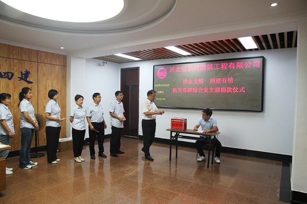 洪水無情,四建有愛。公司發(fā)揚(yáng)“一方有難,八方支援”的中華民族優(yōu)良傳統(tǒng),9月7日—14日,僅一周時間,全體職工匯聚愛心捐助款項(xiàng)共計111723元,通過集團(tuán)公司賬戶捐獻(xiàn)給易縣人民,用于易縣抗洪救災(zāi)和災(zāi)區(qū)人民重建家園。