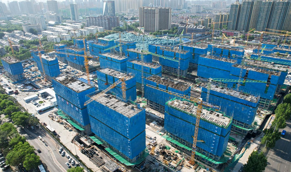 目前,項目36棟住宅樓主體結(jié)構(gòu)施工已完成80%,其中D區(qū)1#、2#樓已封頂,進(jìn)入二次結(jié)構(gòu)施工階段,并同步穿插機(jī)電管線及設(shè)備安裝;地下車庫施工完成55%。