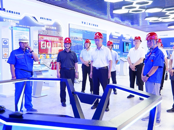 隨后,王現(xiàn)坤一行來到項目“智慧安全體驗中心”,聽取了項目的全息投影、BIM技術(shù)應(yīng)用、實(shí)測實(shí)量工具、智慧工地大數(shù)據(jù)平臺、智能巡檢機(jī)器人、虛擬滅火體驗等十余項智能化設(shè)施運(yùn)用情況的介紹。王現(xiàn)坤特別對項目創(chuàng)新運(yùn)用VR技術(shù)打造沉浸式安全教育模式的做法表示認(rèn)可。他指出,安全是發(fā)展的基石,項目突破傳統(tǒng)培訓(xùn)的局限,以“身臨其境”式教育模式,增強(qiáng)了培訓(xùn)的吸引力和感染力,切實(shí)做到讓安全規(guī)范入腦入心,筑牢了安全生產(chǎn)防線。