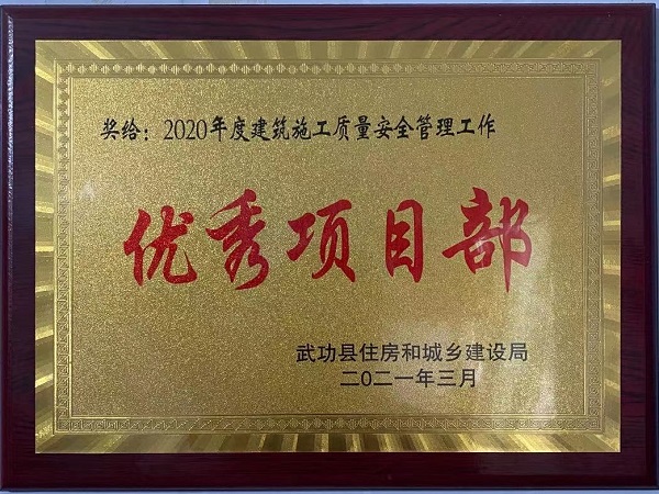 4月25日,武功縣住房和城鄉(xiāng)建設局表彰了2020年度建筑施工、房地產(chǎn)開發(fā)和物業(yè)管理工作先進集體和先進個人,四分公司陜西金沙河項目榮獲“2020年度建筑施工質量安全管理工作優(yōu)秀項目部”稱號。