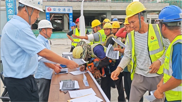 包聯(lián)領導“把脈問診”,安全檢查無死角。6月10日起,分公司班子成員分別率隊奔赴包聯(lián)項目,開展安全專項檢查。檢查開始前,班子成員對項目部所有管理人員進行了安全知識考核,以考促學,檢驗大家對重大安全隱患判定標準、危大工程管控、安全文明施工等方面知識的掌握情況??己私Y束后,班子成員深入施工一線,就安全防護、設備運行、材料堆放及人員操作等內容開展“地毯式”檢查,針對查出的隱患,立即下達整改通知書,直至隱患消除方可繼續(xù)施工。領導班子帶隊檢查,切實提升了分公司安全管控力度和水平。